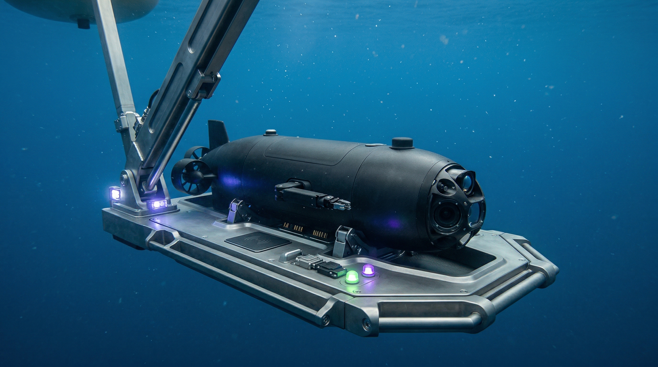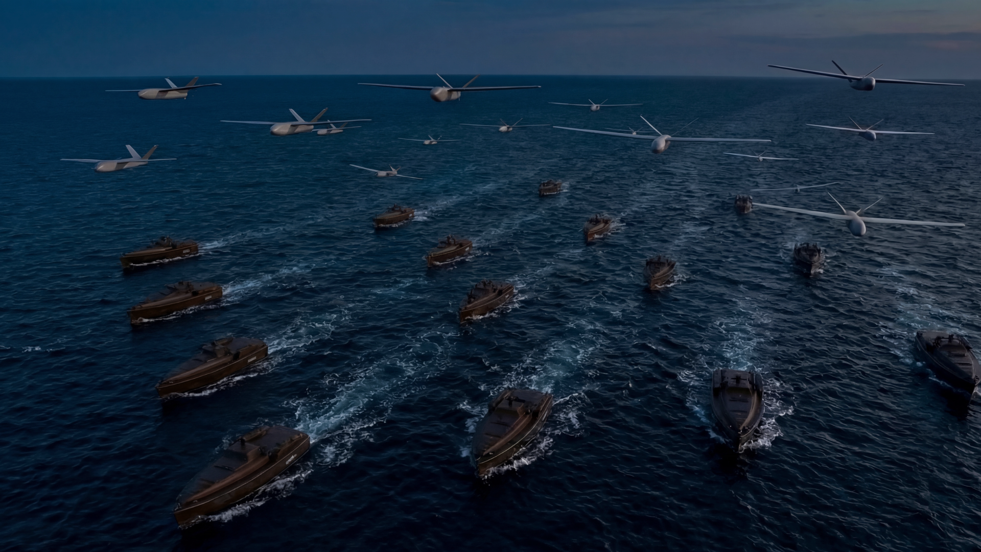 多目的用途に対応する次世代USV。統合センサーマストを備え、船上からのUAV発進・回収に対応する。ミッションモジュールの組み替えにより、多様な運用シナリオに柔軟に適応可能。40ftコンテナに収容でき、陸上輸送による迅速な展開にも対応する。群運用においては、状況に応じた最適な役割を動的に担い、全体としての運用効果を最大化する。